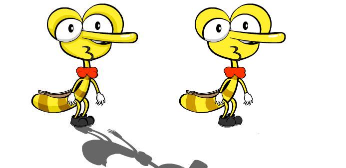 Dalam pewarnaannya objek pada animasi kita akan ditampilkan beberapa teknik pewarnaan dari pewarnaan yang biasa sampai pewarnaan gradasi, hal ini membuat efek gambar kita lebih menarik dan lebih realistic, jika kita belajar efek pewarnaan dari awal tentunya kita membutuhkan beberapa usaha yang memungkinkan kita mencapai harapan yang kita inginkan akan tetapi karena saya tidak memiliki basic ilmu pewarnaan objek maka saya hanya memperkirakan dan membuat gambar animasi yang saya gambar dan saya warnai menurut pandangan dan penglihatan saya lebih menarik. Setelah saya mencoba memberikan sedikit pencahayaan atau efek bayangan yang disebabkan datangnya cahaya dan akan membentuk bayangan ketika cahaya tersebut mengenai bagian dari suatu benda :