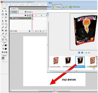 Pastinya kita telah membuka flash mx, maka drag gambar yang telah disiapkan ke direktori flash MX