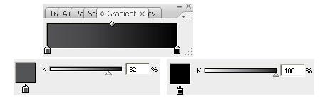 Hilangkan outline Lalu gunakan Gradient tool dan tarik dari samping kiri ke atas kanan hingga membentuk gradient seperti berikut:
