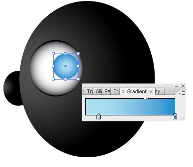 Sekarang seleksi bola mata dan hilangkan outlinnya kemudian set gradient seperti berikut